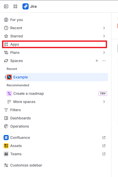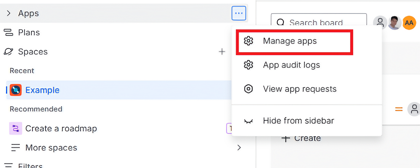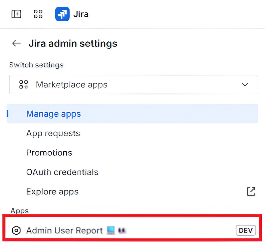 - From the left navigation or Jira Apps menu, select Manage Apps.